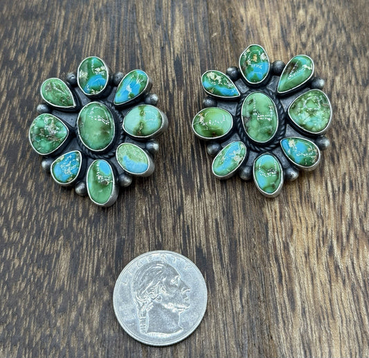 Navajo Handmade Sterling Silver Sonoran Gold Turquoise Cluster Post Earrings