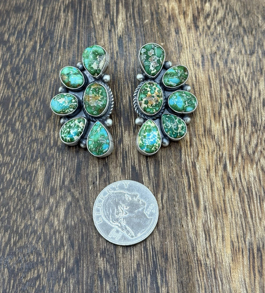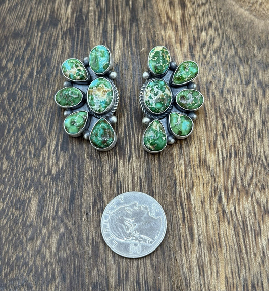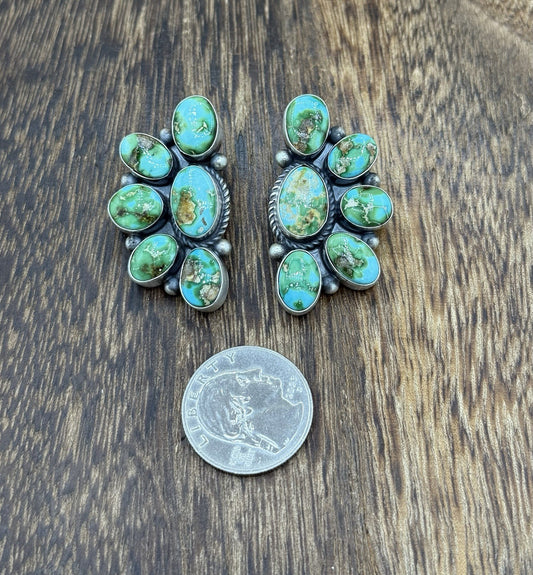 Navajo Handmade Sterling Silver Sonoran Gold Turquoise Half Cluster Earrings