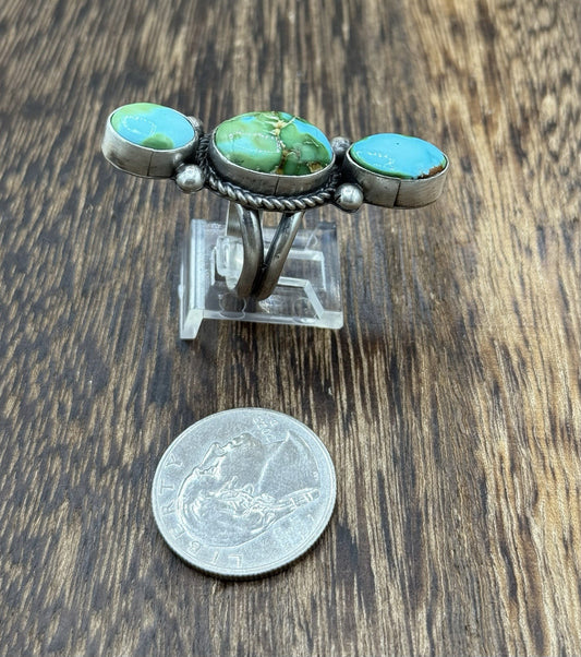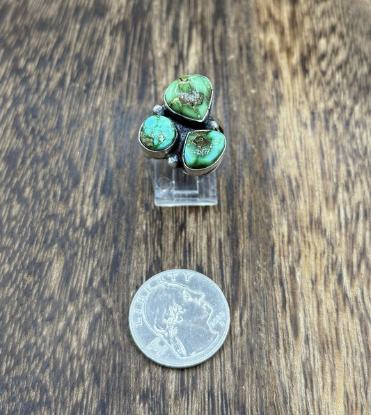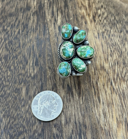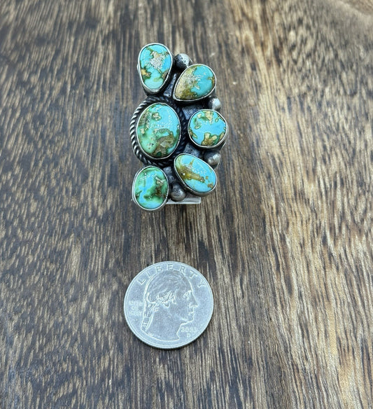 Navajo Handmade Sterling Silver Sonoran Gold Turquoise Half Cluster Ring Size 8