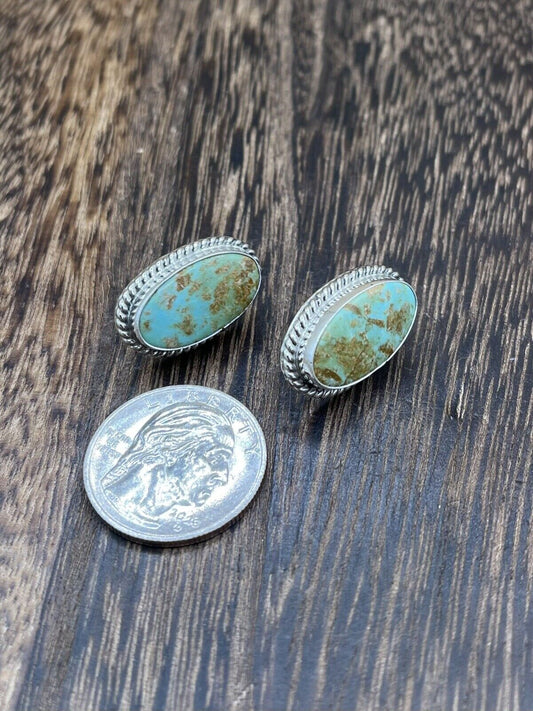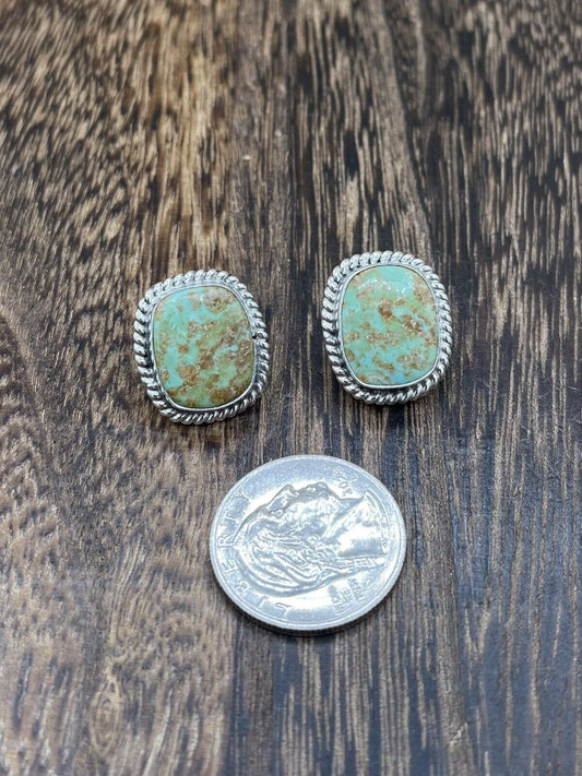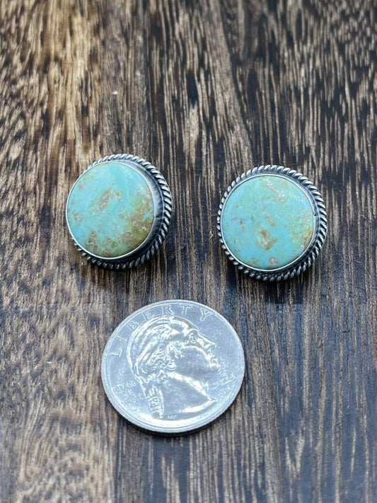 Navajo Handmade Sterling Silver Sonoran Turquoise Post Stud Earrings Byron Begay