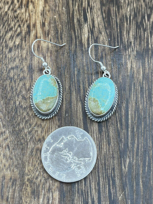 Navajo Handmade Sterling Silver Sonoran Turquoise Dangle Earrings By Byron Begay