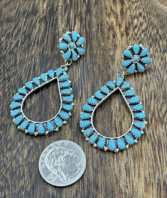 Navajo Handmade Sterling Silver Turquoise Cluster Post Drop earrings Large