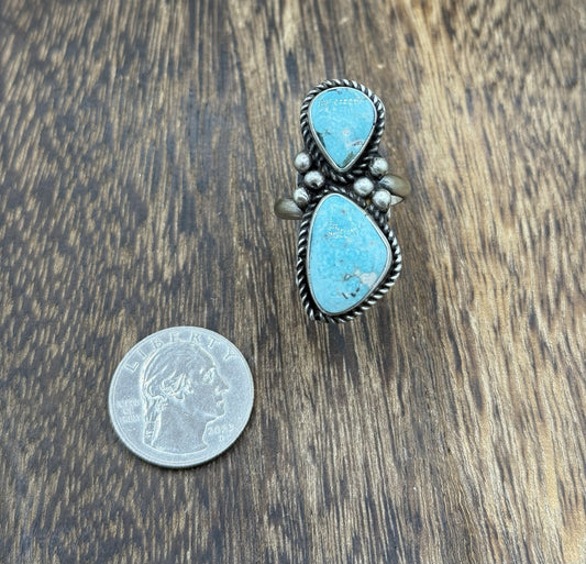 Navajo Handmade Sterling Silver White Water Turquoise Adjustable Ring Size 7 - 9
