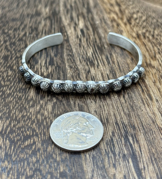 Navajo Handmade Sterling Silver Old Look Concho Design Stacker Cuff Bracelet