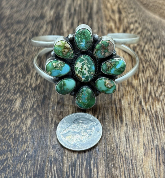 Navajo Handmade Sterling Silver Blue Ridge Turquoise Cluster Cuff Bracelet