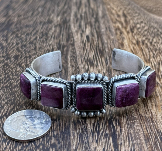 Native Navajo Handmade Sterling Silver Purple Spiny Oyster Shell Cuff Bracelet