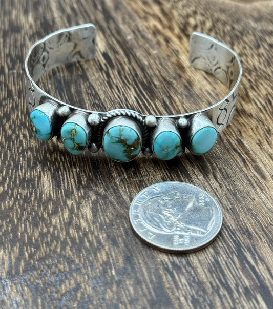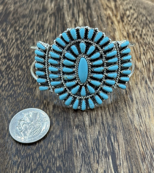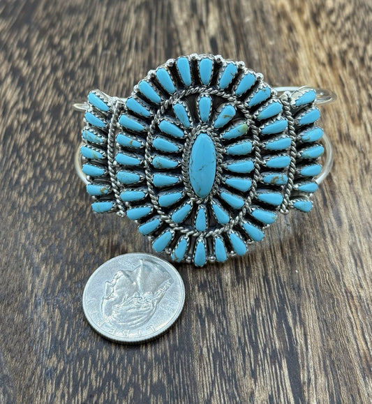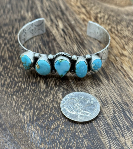 Native American Navajo Handmade Sterling Silver Turquoise Cluster Cuff Bracelet