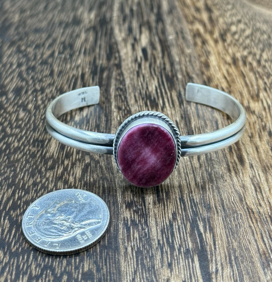 Navajo Handmade Sterling Silver Purple Spiny Oyster Stacker Cuff Bracelet