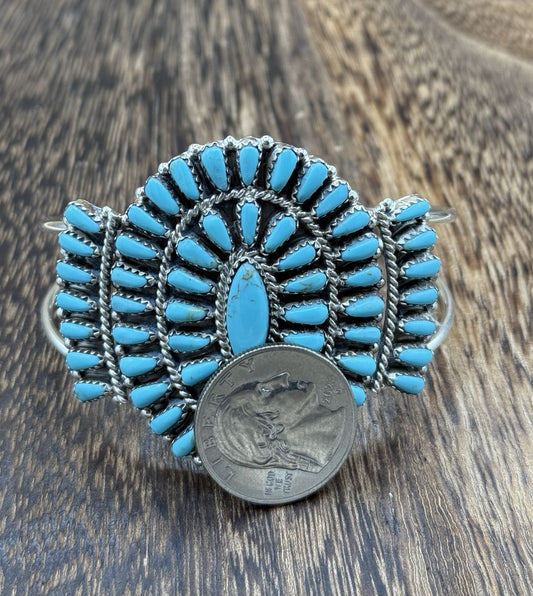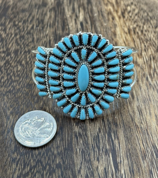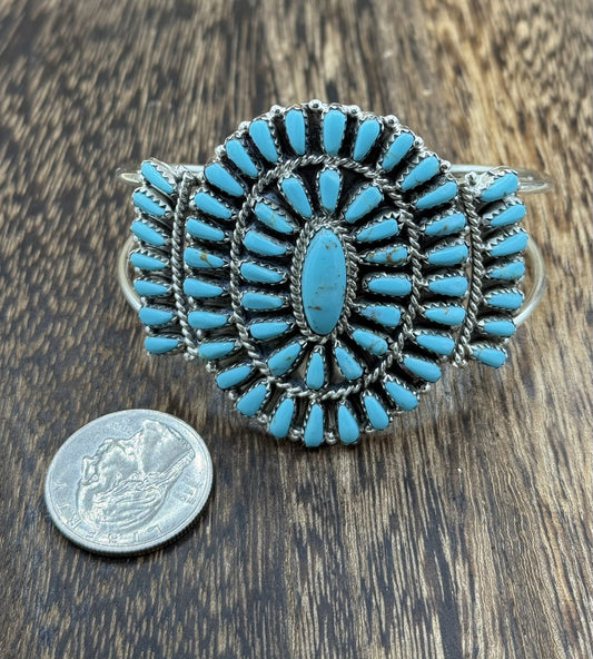 Native American Navajo Handmade Sterling Silver Turquoise Cluster Cuff Bracelet