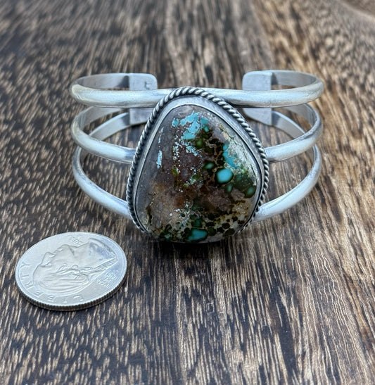 Native American Navajo Handmade Sterling Silver Royston Turquoise Cuff Bracelet