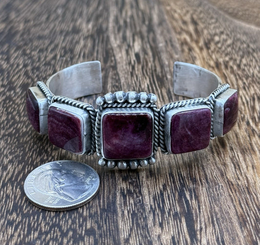 Native Navajo Handmade Sterling Silver Purple Spiny Oyster Shell Cuff Bracelet