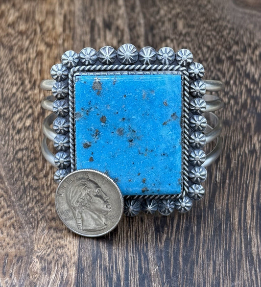 Native Navajo Handmade Sterling Silver Kingman Turquoise Old Look Cuff Bracelet
