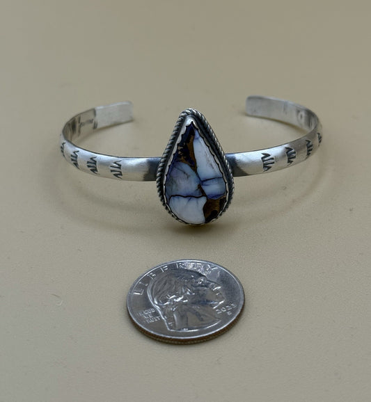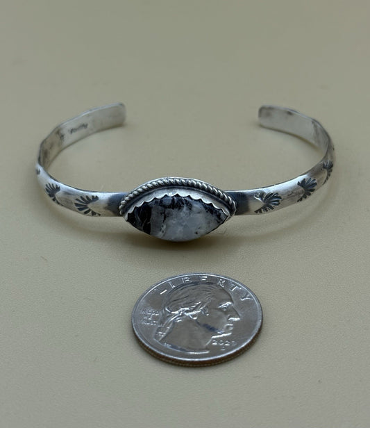Navajo Handmade Sterling Silver White Buffalo Stamped Stacker Cuff Bracelet