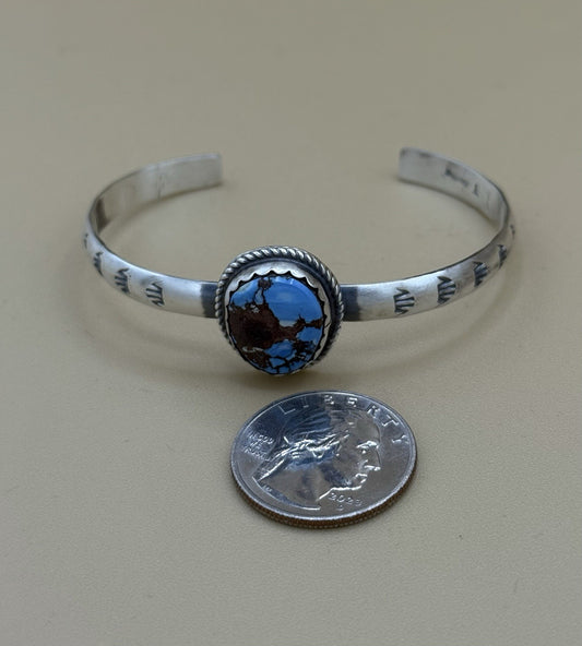 Navajo Handmade Sterling Silver Golden Hills Turquoise Stacker Cuff Bracelet