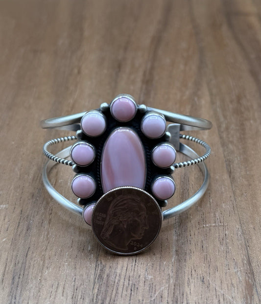 Navajo Handmade Sterling Silver Pink Conch Cluster Cuff Bracelet Large