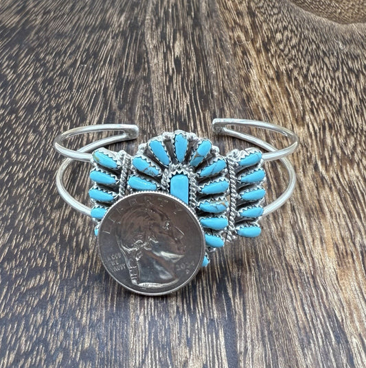 Navajo Handmade Sterling Silver Turquoise Traditional Cluster Cuff Bracelet