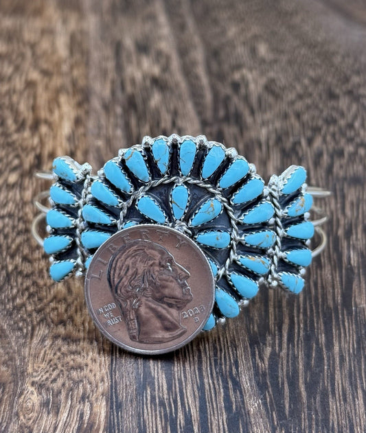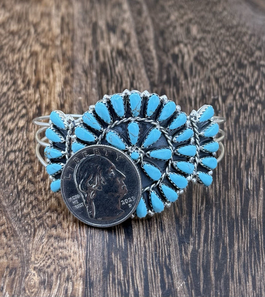 Native American Navajo Handmade Sterling Silver Turquoise Cluster Cuff Bracelet