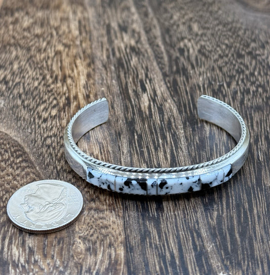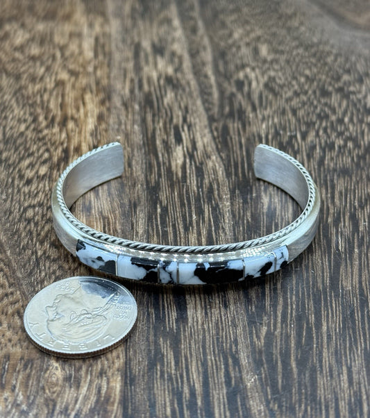 Navajo Handmade Sterling Silver White Buffalo Inlay Cuff Bracelet Francis Yazzie