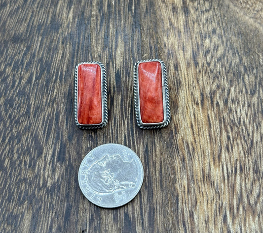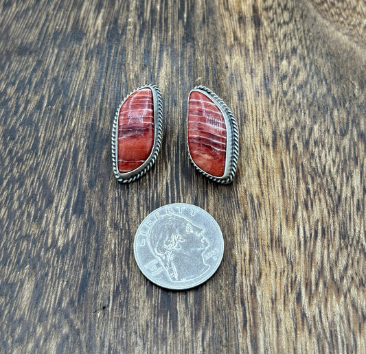 Native Navajo Handmade Sterling Silver Red Spiny Oyster Shell Post Stud Earrings