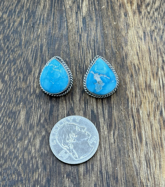 Native Navajo Handmade Sterling Silver Blue Bird Turquoise Post Stud Earrings
