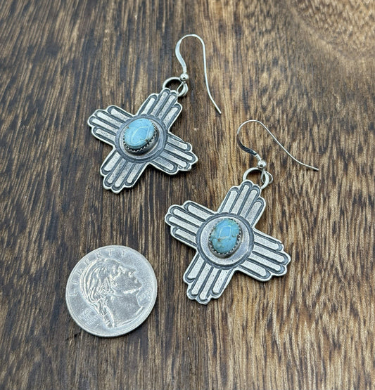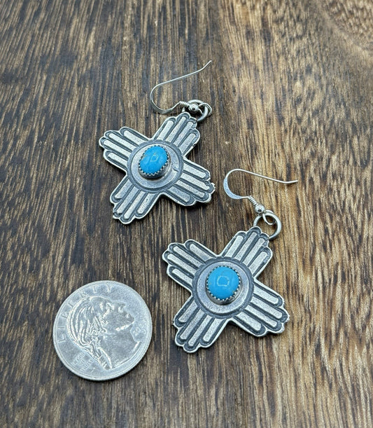 Navajo Handmade Sterling Silver Zia Kingman Turquoise Earrings Kevin Billah