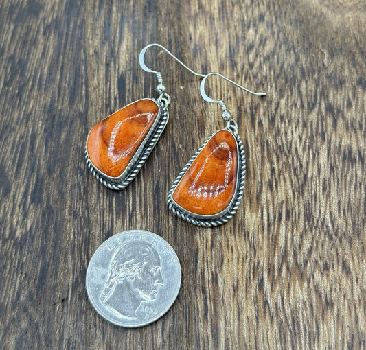 Native Navajo Handmade Sterling Silver Orange Spiny Oyster Shell Dangle Earrings