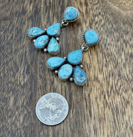 Navajo Handmade Sterling Silver Blue Bird Turquoise Cluster Post Dangle Earrings