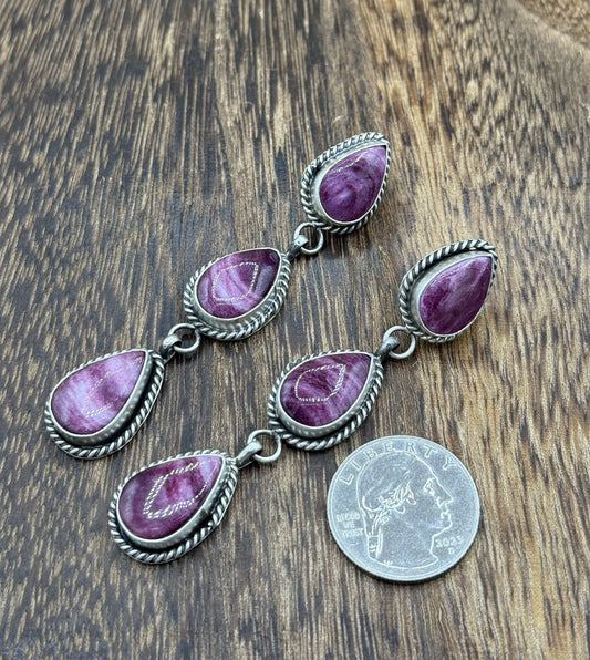 Native Navajo Handmade Sterling Silver Purple Spiny Oyster Post Dangle Earrings