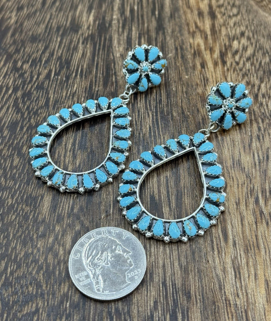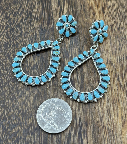 Navajo Handmade Sterling Silver Turquoise Cluster Post Drop earrings Large