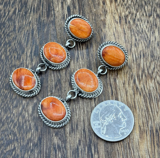 Native Navajo Handmade Sterling Silver Orange Spiny Oyster Post Dangle Earrings