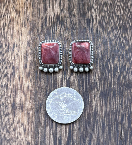 Native Navajo Handmade Sterling Silver Red Spiny Oyster Shell Post Stud Earrings