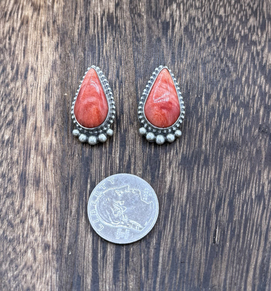 Native Navajo Handmade Sterling Silver Orange Spiny Oyster Post Stud Earrings