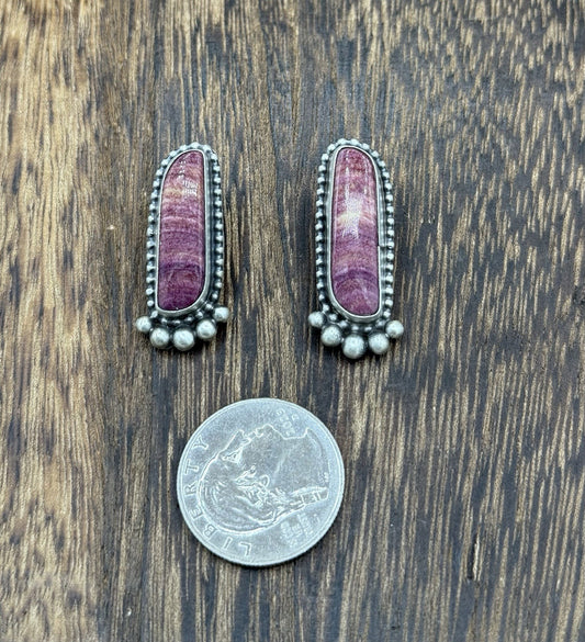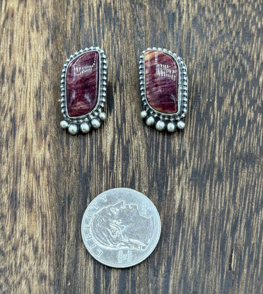 Native Navajo Handmade Sterling Silver Purple Spiny Oyster Post Stud Earrings