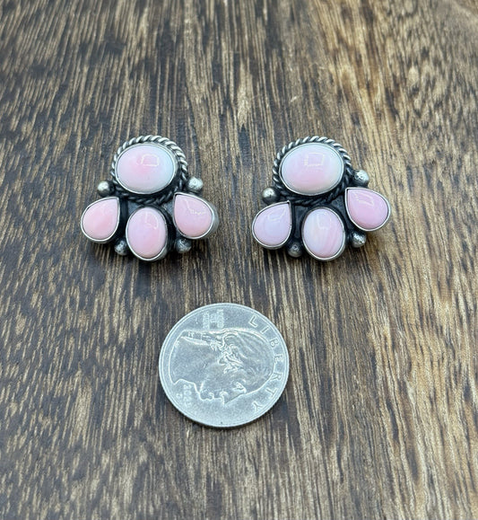 Native Navajo Handmade Sterling Silver Pink Conch Shell Cluster Earrings