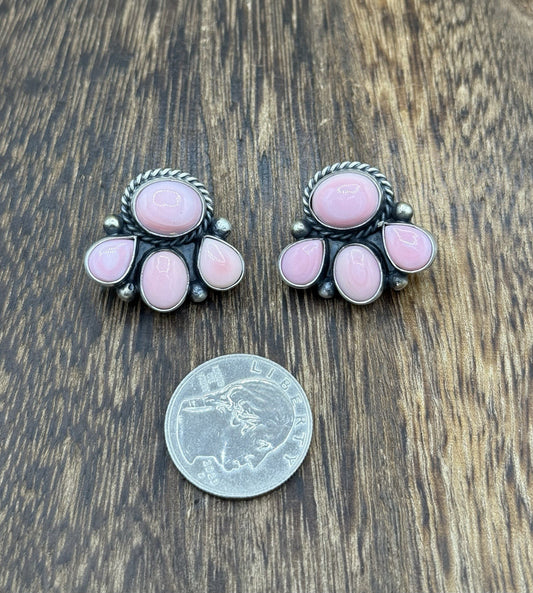 Native Navajo Handmade Sterling Silver Pink Conch Shell Cluster Earrings