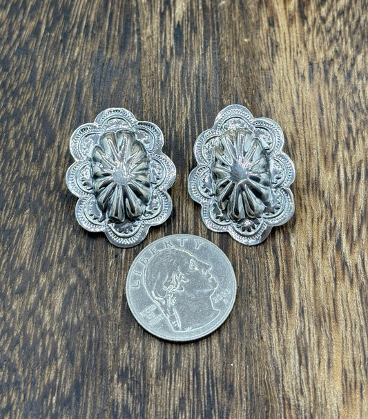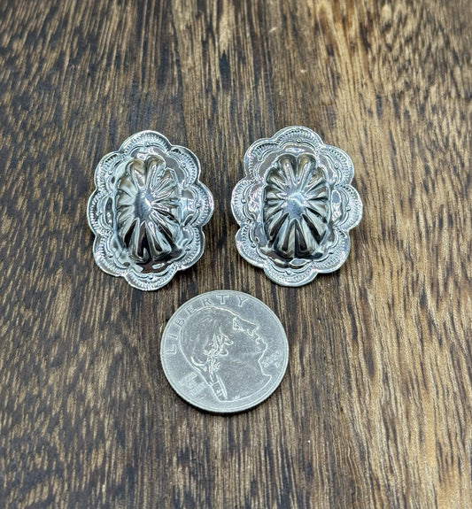 Navajo Handmade Sterling Silver Old Look Stamped Concho Design Post Earrings