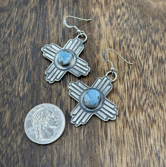 Navajo Handmade Sterling Silver Zia Golden Hills Turquoise Earrings Kevin Billah