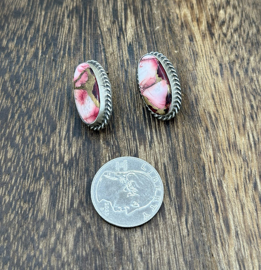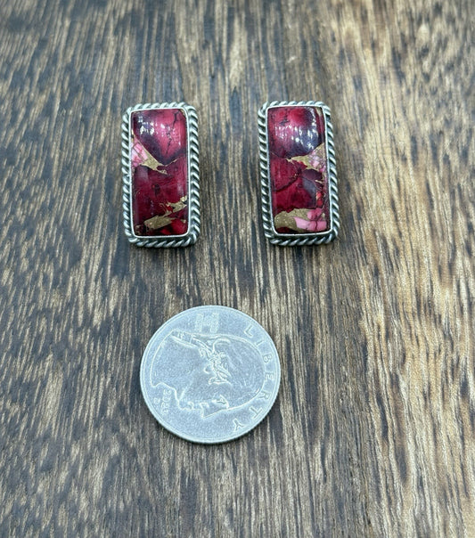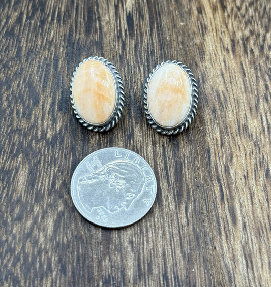 Native Navajo Handmade Sterling Silver Orange Spiny Oyster Shell Stud Earrings