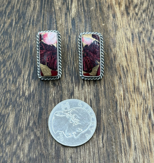 Navajo Handmade Sterling Silver Multi Spiny Oyster Shell Post Cluster Earrings