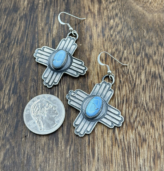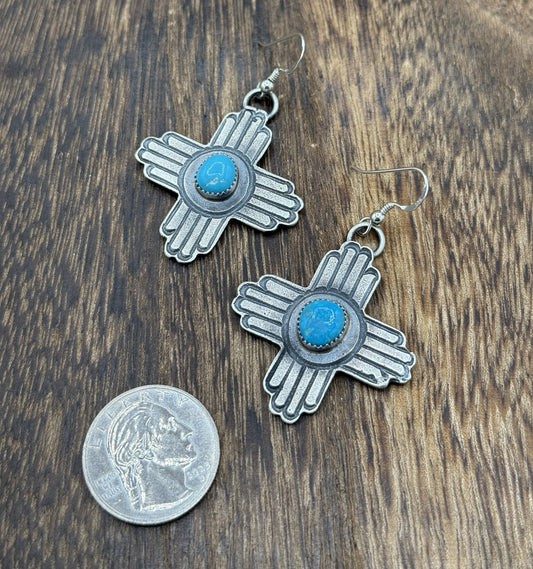 Navajo Handmade Sterling Silver Zia Kingman Turquoise Earrings Kevin Billah