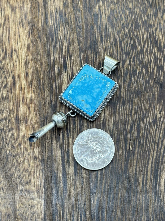 Native Navajo Handmade Sterling Silver Kingman Turquoise Dangle Blossom Pendant