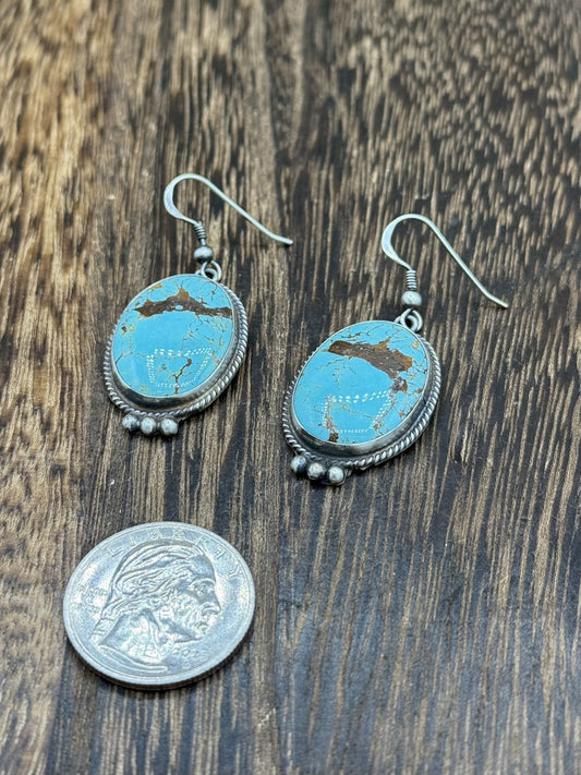 Navajo Handmade Sterling Silver Blue Glacier Turquoise Dangle Earrings Byron B.