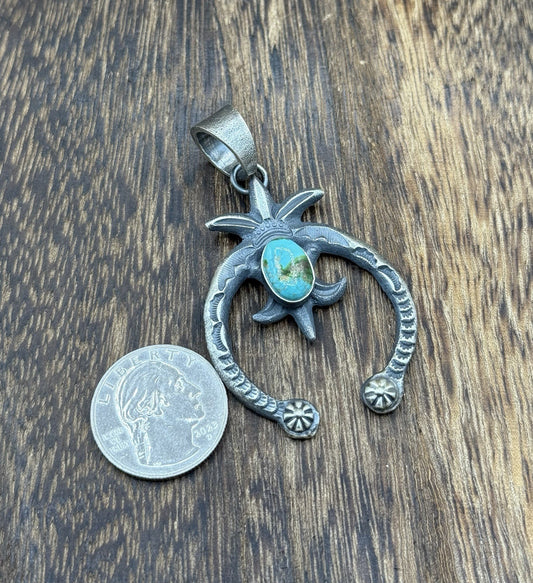 Navajo Handmade Sterling Silver Old Look Sonoran Gold Turquoise Naja Pendant