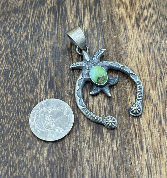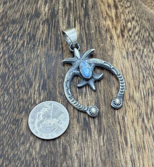 Navajo Handmade Sterling Silver Old Look Golden Hills Turquoise Naja Pendant