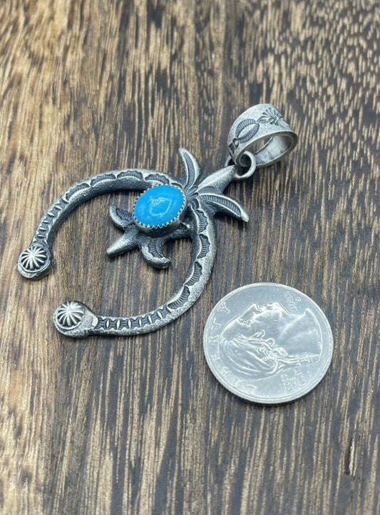 Native American Indian Navajo Handmade Silver Old Look Turquoise Naja Pendant