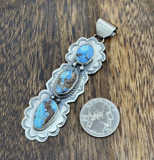 Native Navajo Handmade Sterling Silver Golden Hills Turquoise Drop Pendant