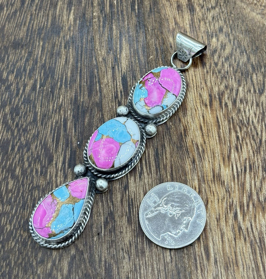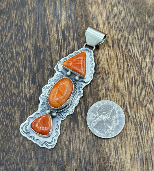 Native Navajo Handmade Sterling Silver Multi Spiny Oyster Shell Drop Pendant