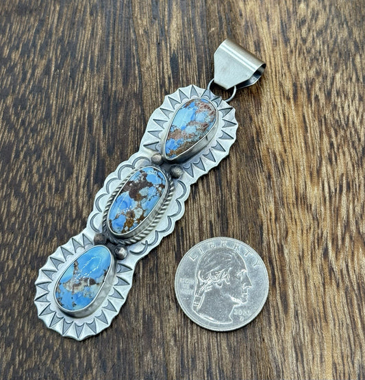 Navajo Handmade Sterling Silver Sonoran Gold Turquoise Stamped Drop Pendant