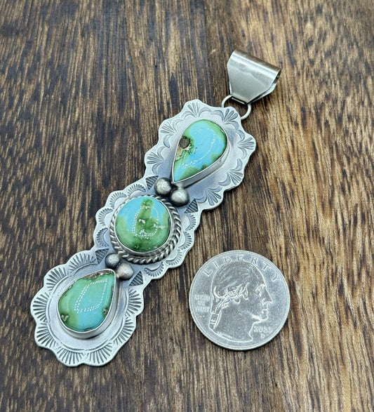 Navajo Handmade Sterling Silver Golden Hills Turquoise Stamped Drop Pendant