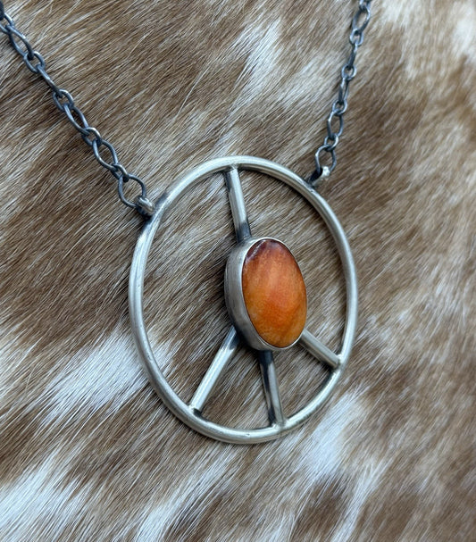 Navajo handmade Sterling Silver Spiny Oyster Shell Peace Hippie Necklace 18”